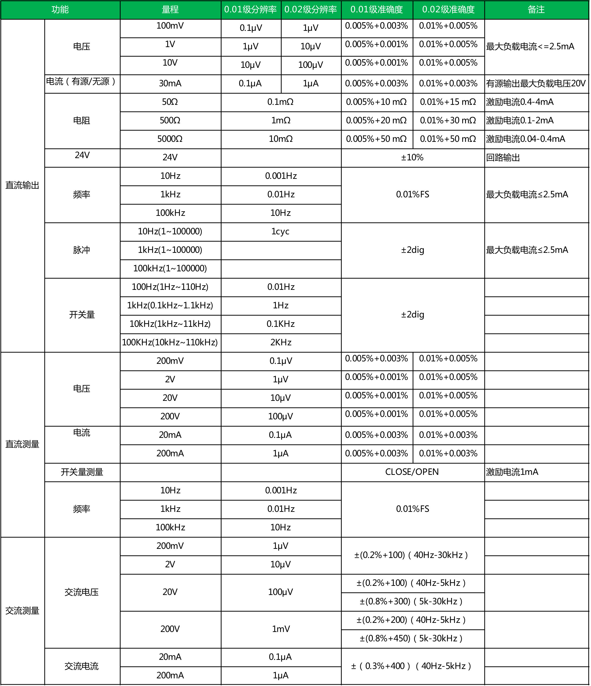 ● 精度为0.01%、0.02%两种;