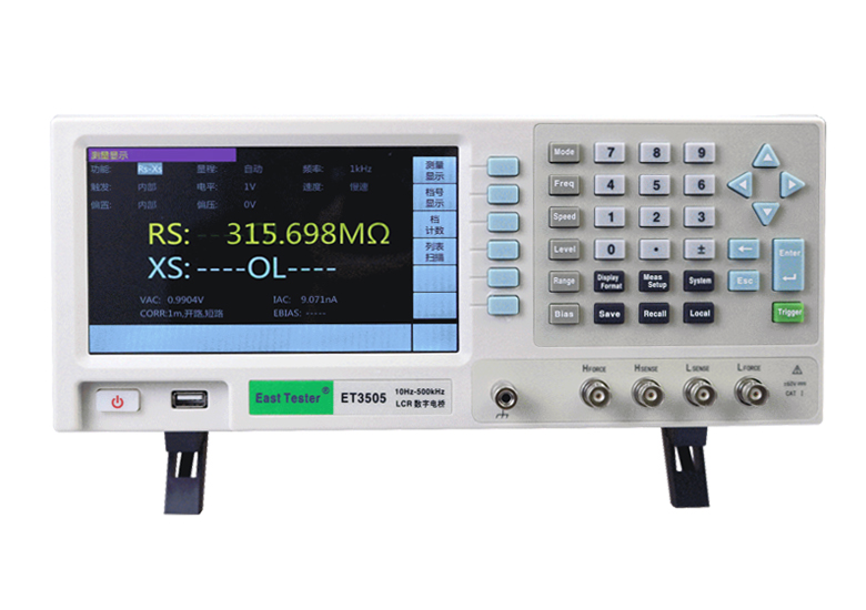 ET35系列LCR数字电桥是采用自动平衡电桥原理设计的高精度元件参数分析仪,其10Hz~1MHz的测试带宽、频率连续可调、0.05%的基本测量精度以及仪器所提供的自动电平控制功能、列表扫描和档计数功能为绝大多数元器件和材料提供准确、完整的测量与分析,广泛适用于产品研发、元器件入厂检验、产品在线分检等应用场合。